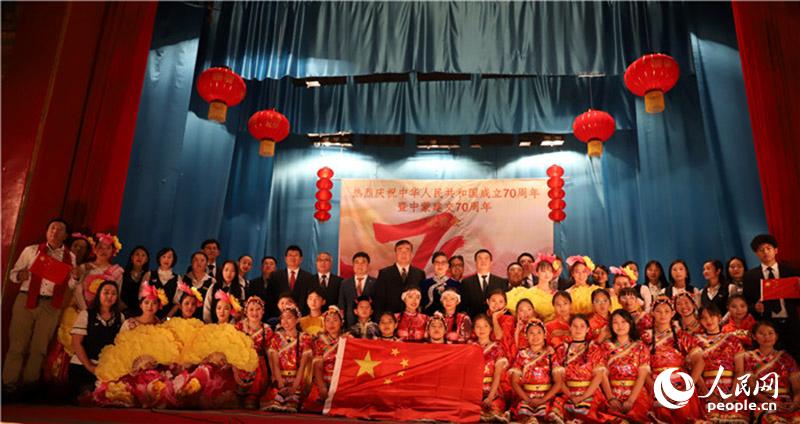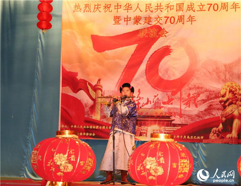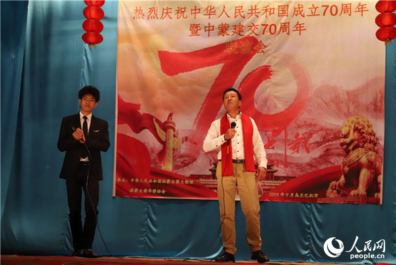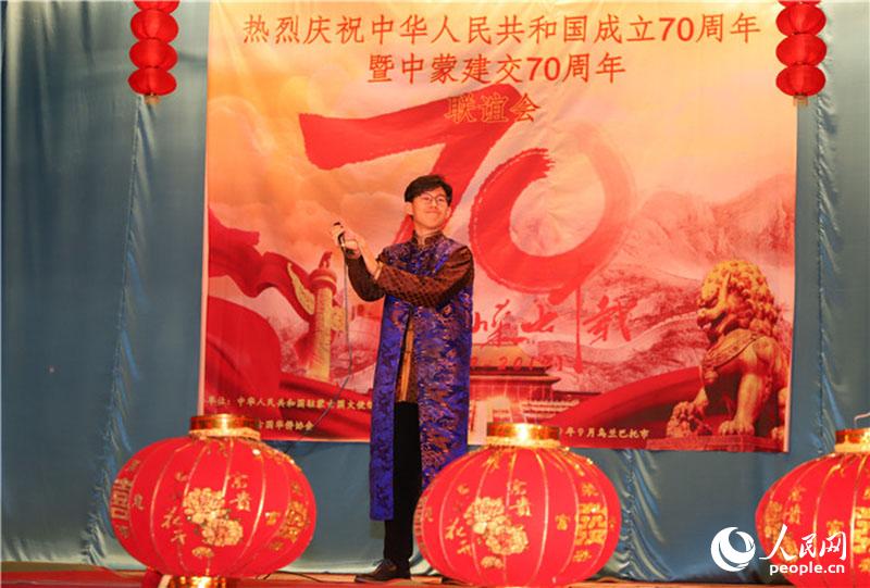 人民网乌兰巴托9月16日电(记者 霍文)作为中国驻蒙古国大使馆庆祝新中国成立70周年系列活动之一,由旅蒙古国华侨协会和中国驻蒙古国大使馆共同主办的“侨心筑梦旅蒙、共谱华诞乐章”——庆祝新中国成立70周年旅蒙华侨华人联谊会16日在蒙古国首都乌兰巴托举行。