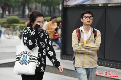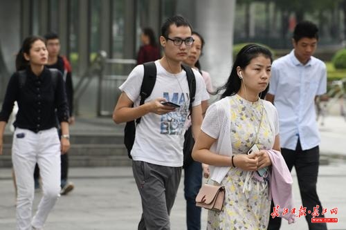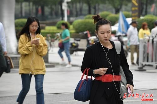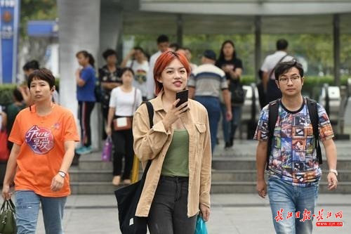 长江网9月17日讯9月17日早晨,气温已经格外凉爽,在汉口航空路街头看到人们已经穿上了长袖薄衫挡寒,感受中秋后的凉意。(记者詹松 实习生刘杰钦 摄)