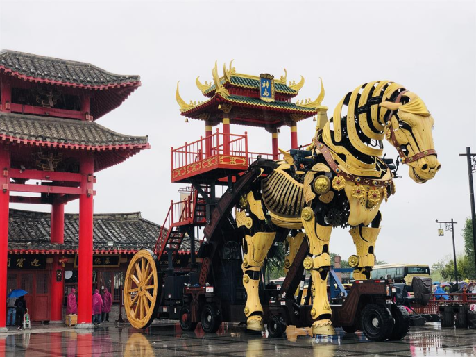 2019年9月15日早上,拥有纯正开封清明上河园“血统”的“中华巨马”,在万众期待中亮相河南开封清明上河园迎宾门前广场,为中秋节最后一天来汴游玩的游客送上了一份惊喜。早在2019年7月,这匹历经3年匠心打造的“神马”就亮相大连夏季达沃斯论坛,震惊世界。