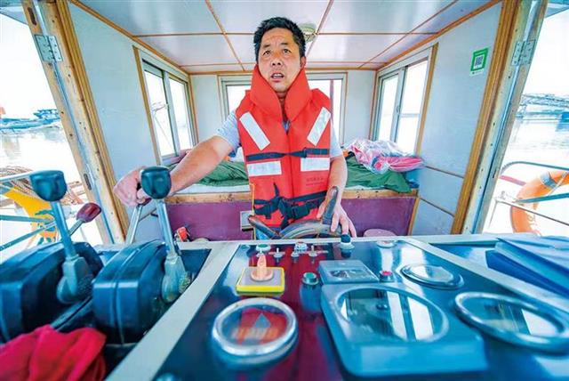 57岁的王义松是第五代船长,已在此摆渡37年,风雨无阻。从木制机动船到全钢机动船,如今这已是他开的第3条船,成为摆渡时间最长的船长。