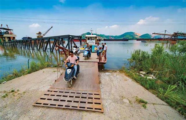 “坐好喽,开船!”9月18日11时30分,阳新县富池镇郝矶村长江边老渡口,船长王义松一声吆喝,缆绳解开,渡船缓缓离开岸边向对岸武穴市田家镇驶去。