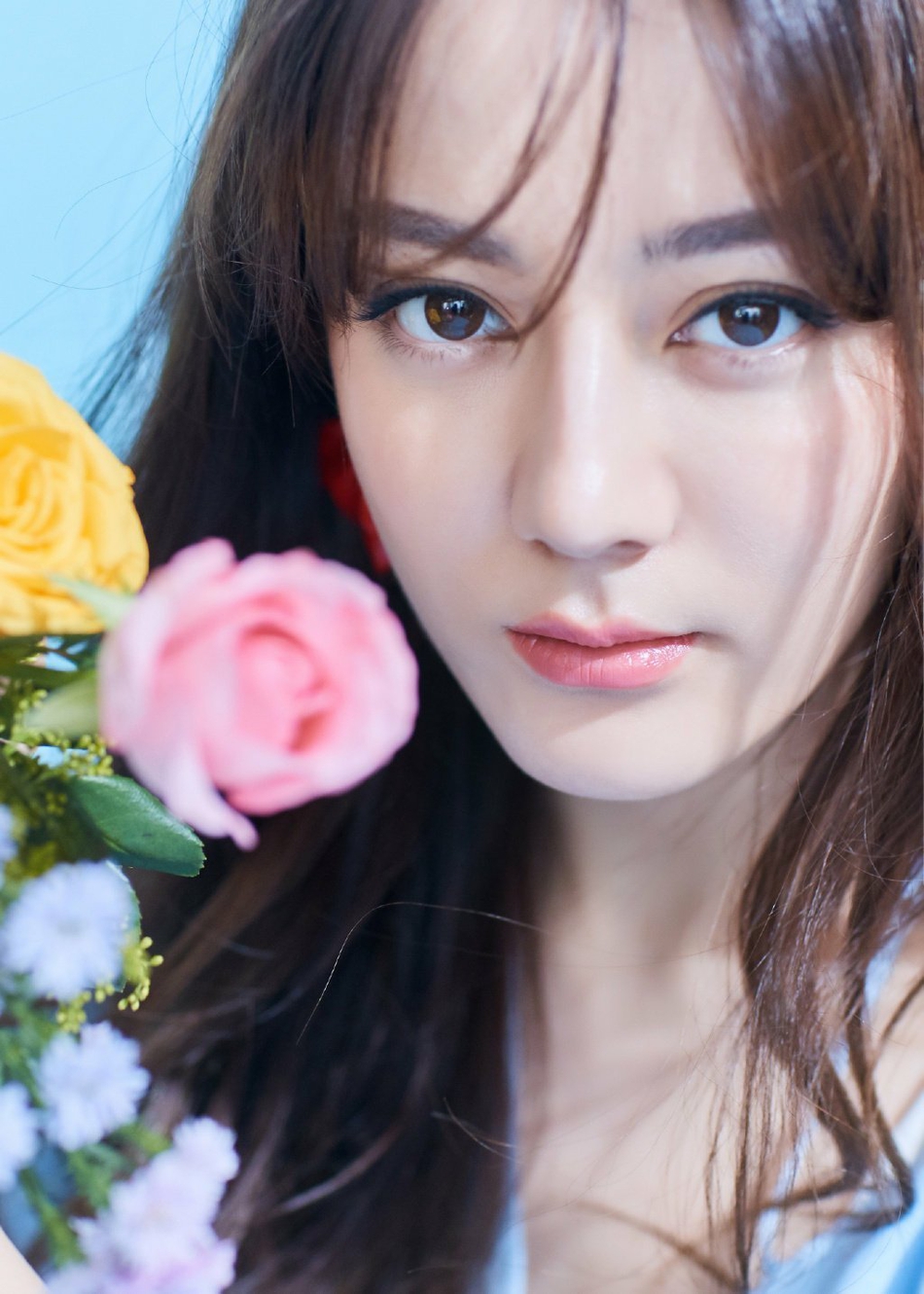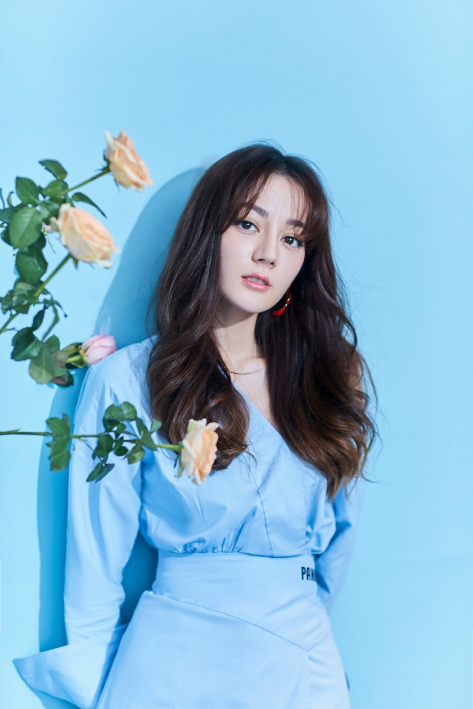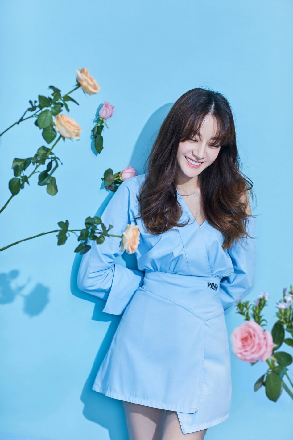 迪丽热巴露肩裙甜美可人 低头浅笑娇俏妩媚