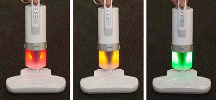 在除螨吸尘的过程中,能够实时检测到这块区域的螨虫量,并通过感应灯进行提示。