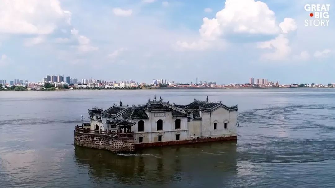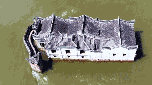 它就是被誉为“万里长江第一阁”的鄂州观音阁。 视频中这样介绍:“鄂州观音阁是万里长江上的唯一(现存)寺庙。这座寺庙坐落在长江里的一块大礁石上。在雨季,寺庙的地基被淹没在水中,这座古建筑看起来就像漂浮(在水面上)。”