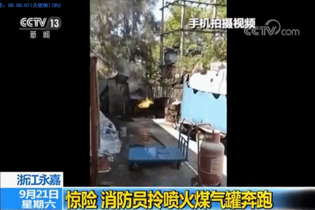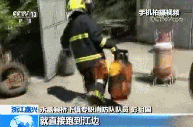 他拎起冒火的煤气罐 36秒狂奔到江边