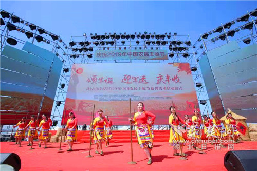 荆楚网客户端—荆楚网消息(记者谭明猛 通讯员刘龙腾)高粱涨红了脸,玉米咧开了嘴,稻子笑弯了腰……9月23日,武汉市庆祝2019年中国农民丰收节开幕式在江夏区举行。
