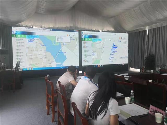 当日,记者来到位于武汉体育中心的武汉军运会开幕式交通保障指挥中心内。在临时搭建的白色帐篷内,两个超大屏幕显示着周边交通情况,以及保障车辆所处的位置、负责人及其联系方式,还可以随时进行通讯联络。