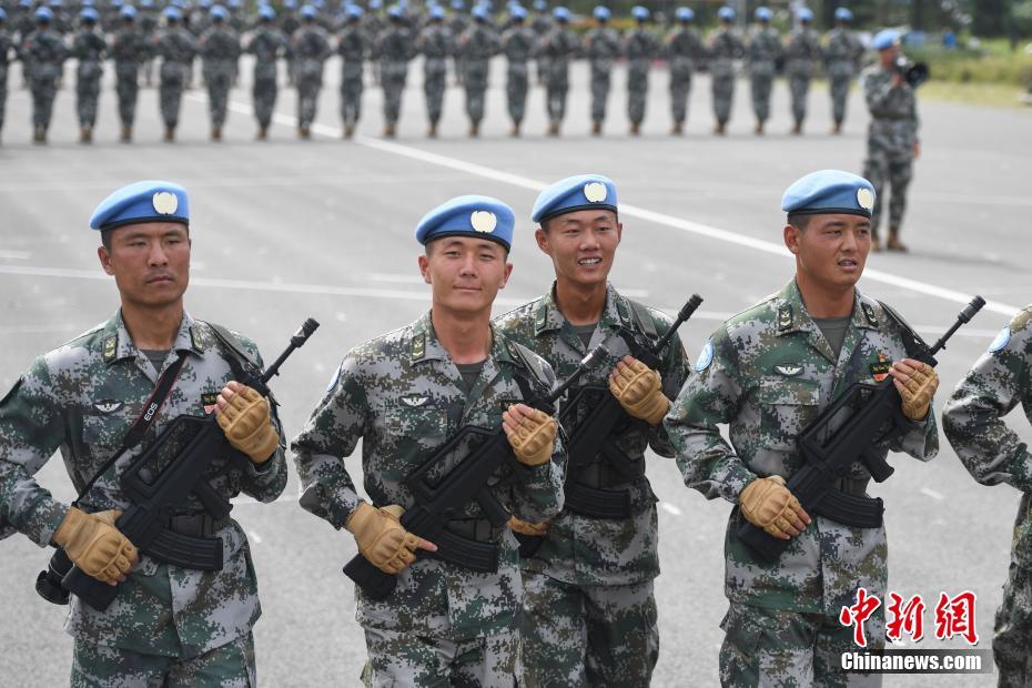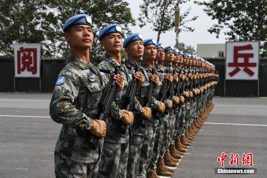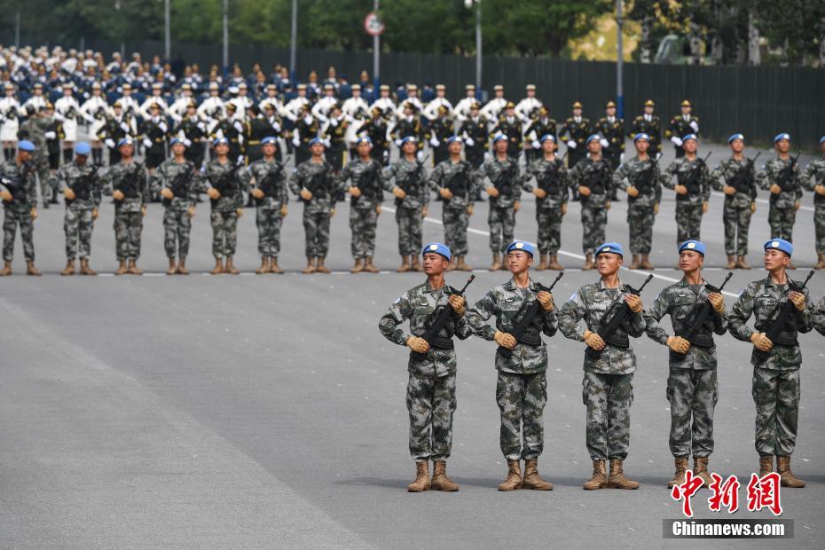 - 近日,中新社记者探访了位于北京市郊的国庆阅兵训练场,了解国庆阅兵的相关组织与训练情况。图为维和部队方队的队员们在训练场上。中新社记者 崔楠 摄