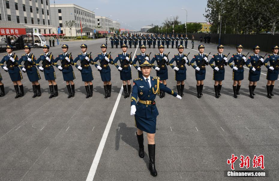 - 近日,中新社记者探访了位于北京市郊的国庆阅兵训练场,了解国庆阅兵的相关组织与训练情况。图为阅兵训练现场的女民兵。中新社记者 崔楠 摄