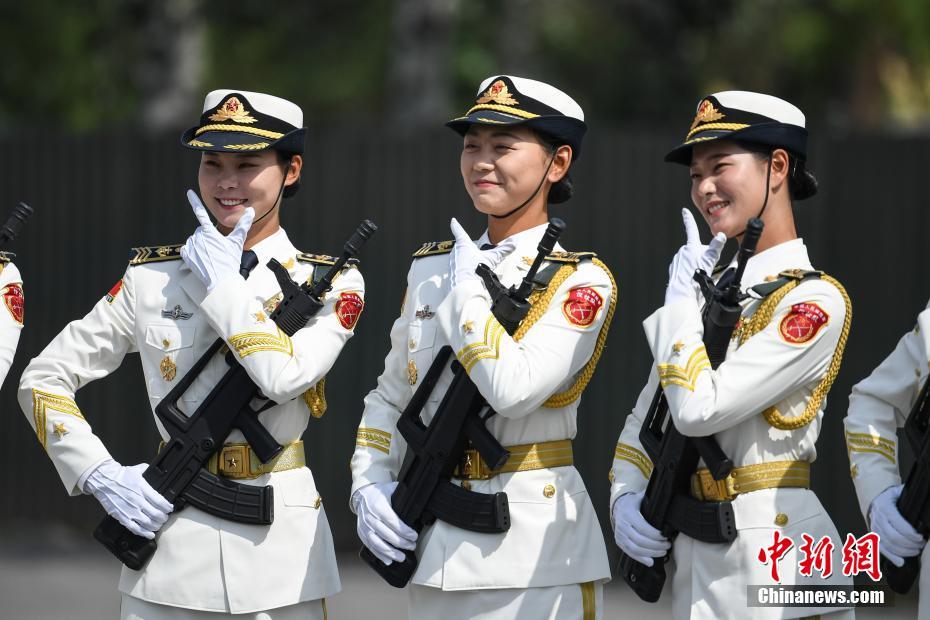 - 近日,中新社记者探访了位于北京市郊的国庆阅兵训练场,了解国庆阅兵的相关组织与训练情况。图为仪仗方队的女兵们在训练间歇露出微笑。中新社记者 崔楠 摄