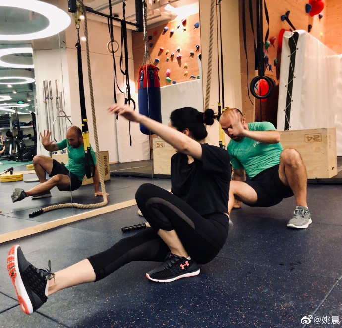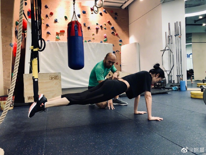 9月27日,姚晨在社交平台分享了一组健身的照片以及素颜自拍,并配文:“撸铁,让自拍更自信!”照片中,姚晨全套运动装备专业到位,在健身教练的指导下做着各种动作,同时她还分享了一张素颜自拍,整个人的皮肤状态非常之好。