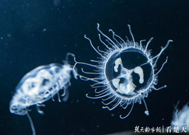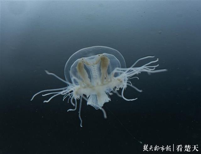 在漳河水库生息繁衍的索氏桃花水母通体透明,无头无尾呈圆形,浮游在水中,晶莹剔透,柔软如绸,身体周边长满了触角,中间长着五个呈桃花形分布的触角状物体。
