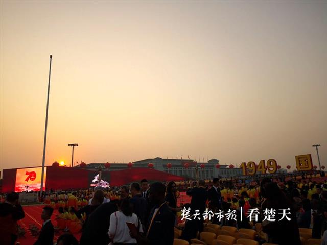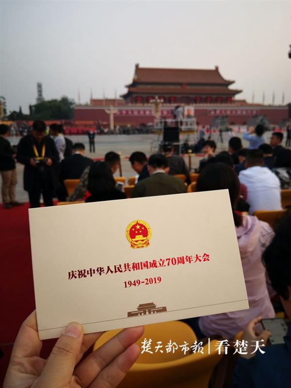 楚天都市报10月1日迅(特派记者陈凌墨发自北京)今天,中华人民共和国成立70周年大会将在北京举行。楚天都市报记者获邀至天安门广场观礼台采访,为您现场发回国庆阅兵盛况。