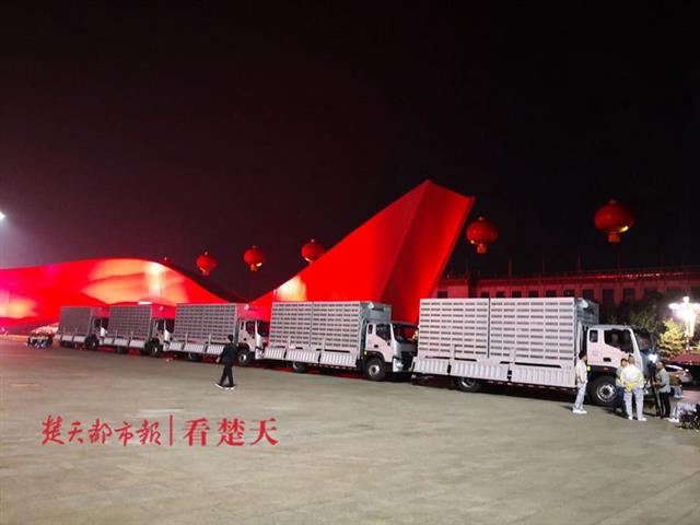 凌晨4时,媒体车队准点发车。20多分钟后,抵达天安门广场。此时的广场,灯火通明。天安门城楼灯笼高挂,长安大街静候天明。