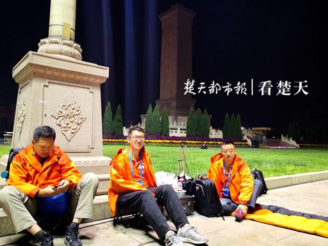 1日凌晨3时许,记者赶到中华世纪坛媒体集结点,此时,越来越多的中外记者陆续抵达,长枪短炮,大箱小包,整装待发。据庆祝大会新闻中心统计,参与报道此次盛会的中外媒体记者达两千多人。