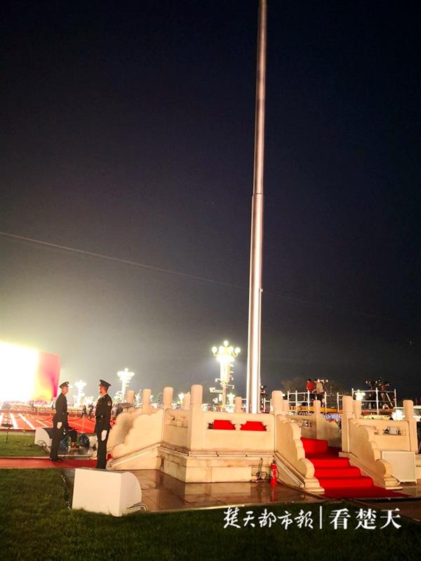 此时的天安门广场,已十分热闹。安保、通信等保障团队已忙碌了一个通宵。