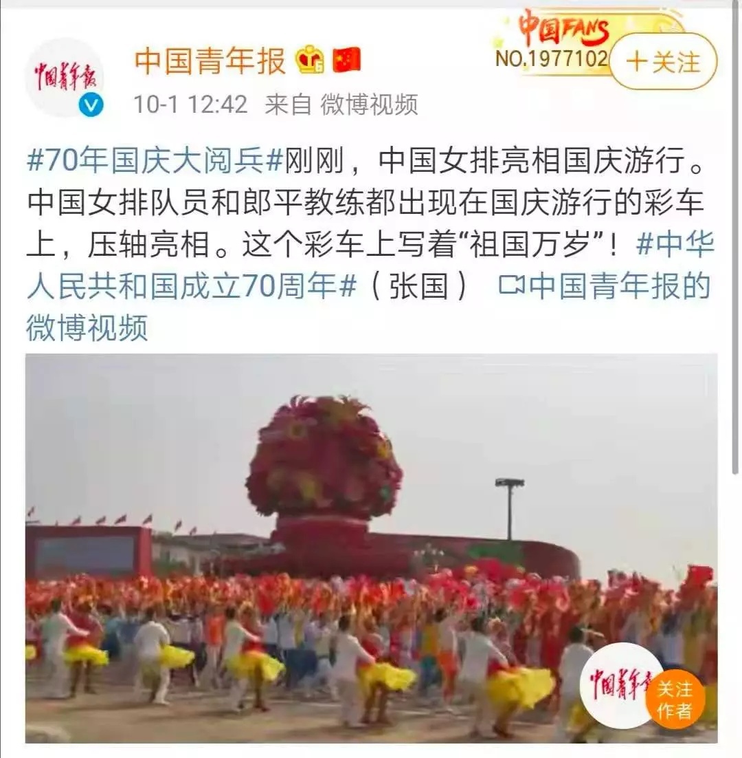 出现在国庆游行的彩车上