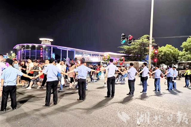 为了保障群众安全文明有序观赏灯光秀,武汉市江岸警方每天在辖区汉口江滩沿线近4公里各主要出入口重点部署警力,疏导交通、引导人流,避免造成严重拥堵和安全事故。