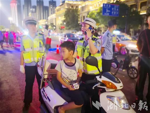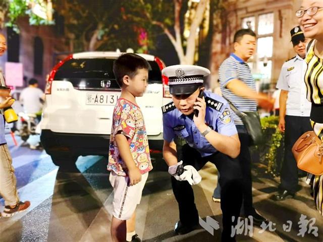 晚20许,正值灯光秀人流高峰期间,在江岸区沿江大道青岛路路口,一个5岁左右的小男孩站在过往的人流中左顾右盼、不知所措。这一幕恰好被带队执勤的武汉市公安局江岸区分局李承涛副局长看到了。李局长连忙和执勤民警走上前去,一边安抚一边耐心询问,在问清小男孩的家人手机号码后,立刻用手机与其家人联系告知男孩具体方位。3分钟后,推着童车的小男孩母亲急忙赶到路口,对民警们的热心帮助表示感谢,过往群众纷纷点赞!