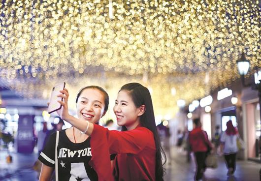 图为:闲暇时,和朋友在汉街游玩