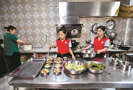 图为:在食堂给孩子们准备午饭