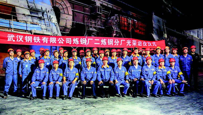 武钢二炼钢厂光荣“退役” 10月9日,武钢有限公司二炼钢厂2号转炉出完第11868炉钢水,与1号转炉一起,正式停炉。至此,二炼钢厂所有转炉停产,光荣“退役”。二炼钢厂于上世纪70年代初开始兴建,共有1号、2号、3号3个转炉,是武钢一米七轧机工程的龙头,于1977年11月正式投产,是武钢高难品种钢冶炼基地,同时也是新中国现代化转炉炼钢和连铸技术人才培养的摇篮和输出基地。图为:二炼钢2号转炉正在炼最后一炉钢。(湖北日报全媒记者 梅涛 摄) 图为:工人们在二炼钢2号转炉前合影留念。
