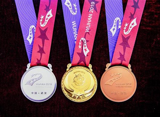 图为:10月10日,第七届世界军人运动会奖牌首次亮相。(湖北日报全媒记者 魏铼 摄)