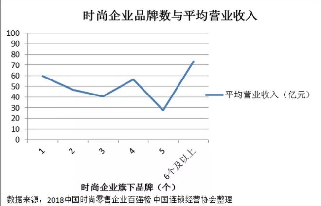 据统计,时尚零售百强企业平均拥有4个品牌,其中服饰鞋履家纺企业平均拥有5个品牌,金银珠宝企业平均拥有2个品牌,护肤美妆企业平均拥有4个品牌。单个品牌时尚零售企业2018年平均销售规模高于拥有2-5个品牌的企业;时尚零售企业旗下拥有6个及以上品牌的销售规模明显高于单个品牌企业。