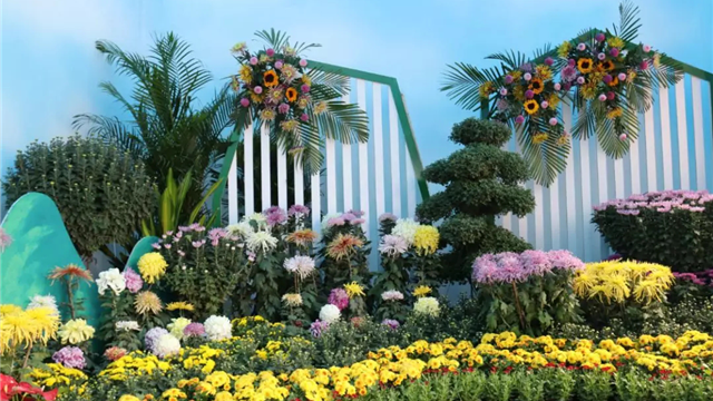 本届国际菊花展设计造型匠心独具,以“星空”、“盛景”、“清园建筑”“炫彩菊花”“歌唱祖国”等为主题,造型宁静安逸、花艺编制注重细节、氛围温馨浪漫。