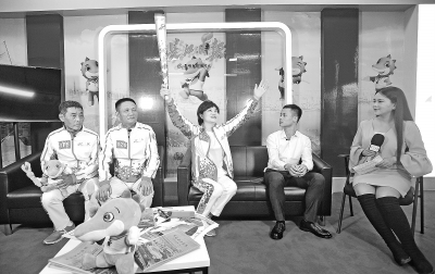 10月16日,火炬手王荔做客本报直播间,现场再现火炬传递时的经典戏曲亮相动作