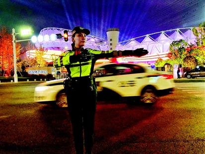 昨日零时,负责开幕式场馆主要路口搭建硬质隔离设施及夜间值守的交警陆续上岗了。凌晨5时,负责东风大道地面层实施临时交通管制的民警已开始上勤。