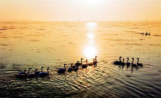 湖泊是大地纵横而温厚的血脉。千百年来,不仅是人们耕读渔猎、繁衍生息的诗意栖居地,也是承载我们精神故乡的“根”和“魂”。水草,芦苇,鱼虾,莲藕,得天独厚的自然资源,不仅滋养着湖北人民,也成为鸟儿的天堂。有多少云的姿态,就有多少鸟的翅影,小天鹅、绿头鸭、鸬鹚、斑头雁、白鹳、伯劳……每到秋冬季节,还有千千万万只鸟儿跨越千山万水奔赴而来,用天籁般的鸣叫和振翼,在此间演奏一曲曲壮丽的春之序曲。