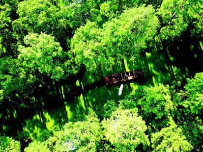 图为:武汉市新洲区涨渡湖湿地,水上森林绿意盎然。(视界网肖劲松摄)