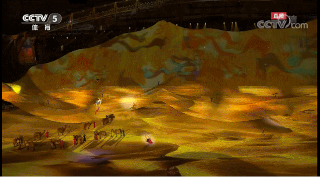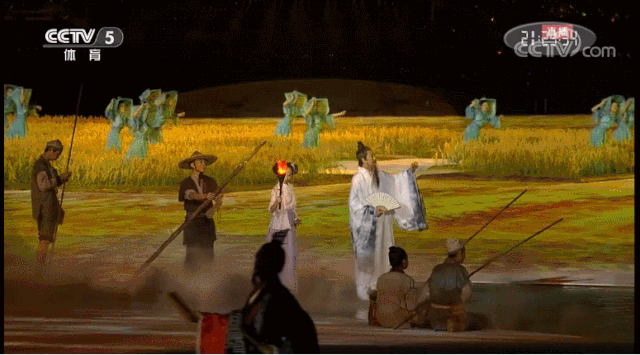 此外,杨笑阳对《江山如画》节目情有独钟。在五谷丰登的和平景象里,一群身着华服的女子款款而来。随着她们美妙的舞步,水墨在大地上逐渐晕染开来,河岸两侧绘就出了《千里江山图》和《清明上河图》!