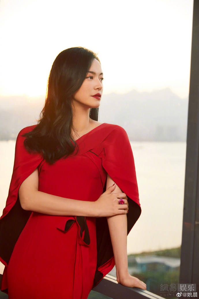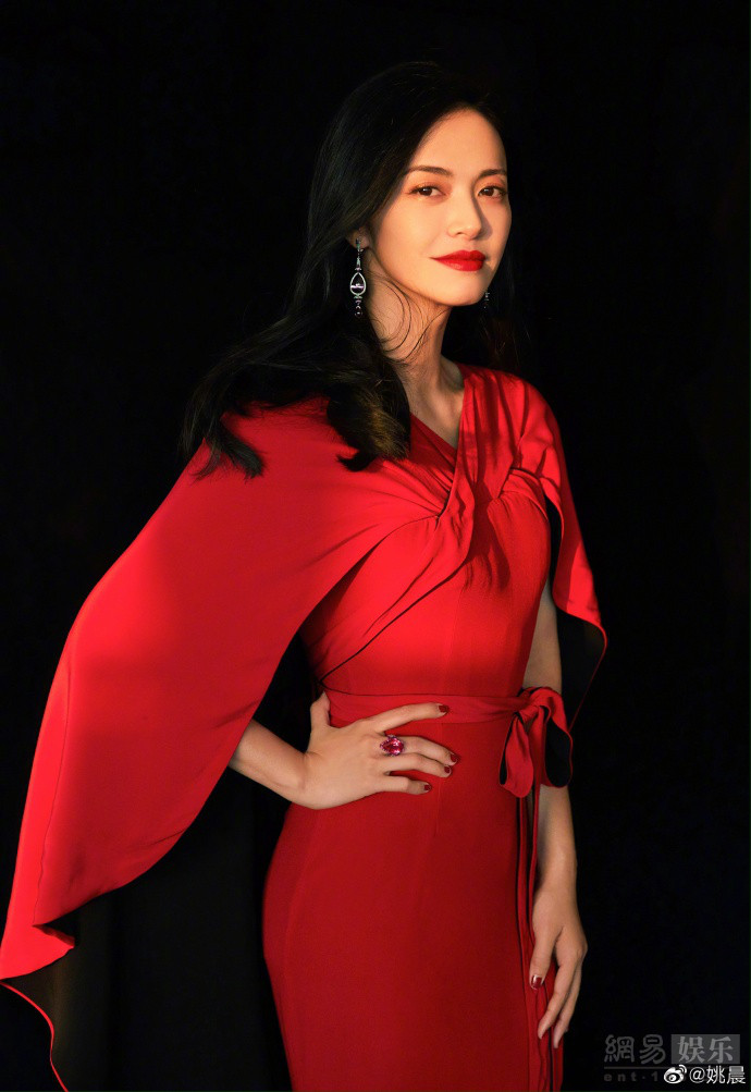 10月20日,姚晨晒出一组自己的红毯美图,并配文:“海女回家,必须喜庆!”照片中,姚晨一头黑色长发微卷披肩,身穿红色披肩长裙,妆容精致红唇抢眼,气质优雅迷人。