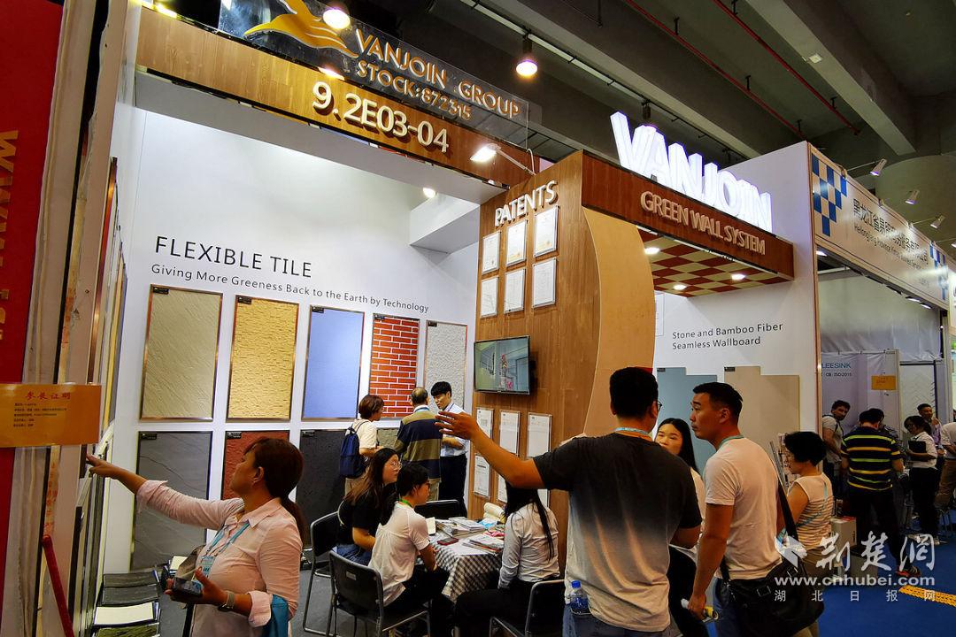 在建筑及装饰材料展区一排排展示着墙体材料的货架群中,一块呈现为波浪形的墙体材料格外引人注意。威骏(湖北)高新实业股份有限公司(以下简称“威骏高新”)的负责人张婷介绍道,这是“软瓷砖”,较传统瓷砖更柔韧、更具弹性、更耐磨,而且具有绿色环保的特性。