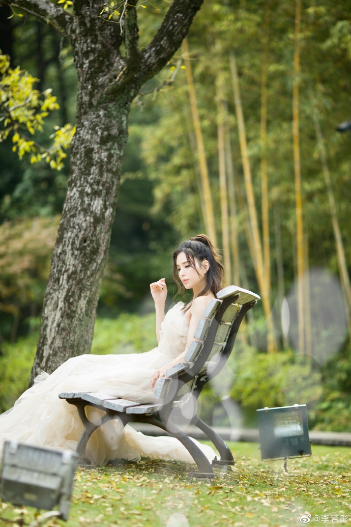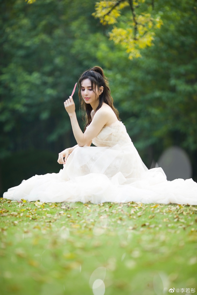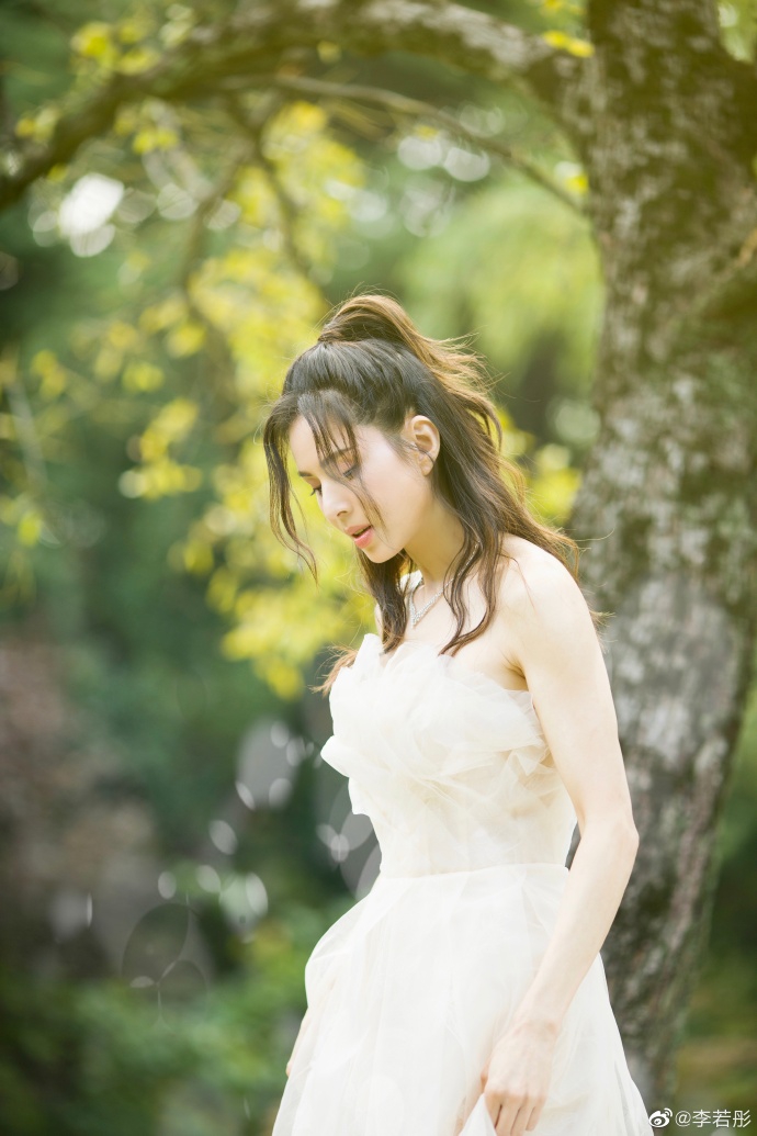 10月23日,李若彤在微博上晒出一组婚纱照,并配文:“给我妈妈看看这组照片,就当是完成她的心愿了~”照片中,李若彤身穿抹胸婚纱在绿草地中优雅回眸,小露香肩纯洁迷人,姑姑真的太美啦!