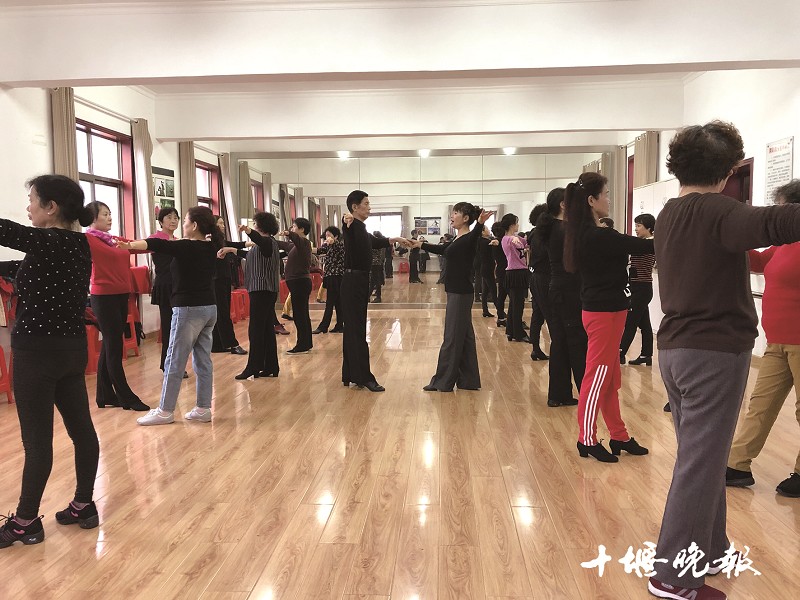 22日,记者在茅箭区老年大学的课堂上,看到梁馨月老师正在讲授摩登舞的5个基本舞步,一步一个定点,必须两人配合默契。这节课上,共有38名老年学员,他们身穿轻便的衣服,脚踩低跟皮鞋,脸上洋溢着笑容,在老师的带领下,跟随音乐的节奏,越跳越“青春”。