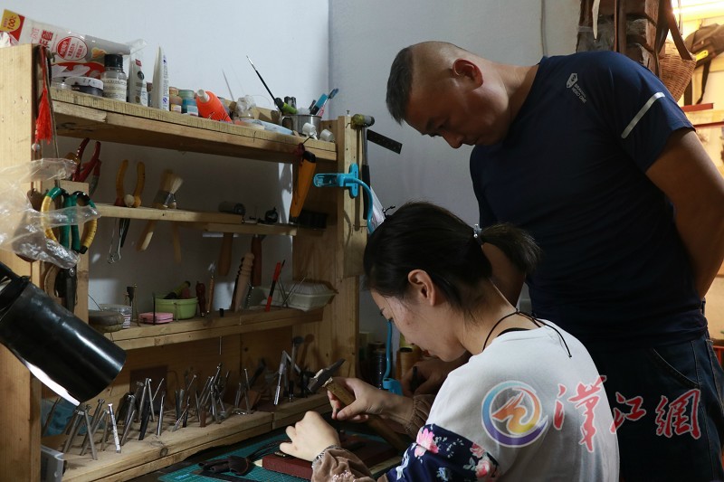 李骥指导学员制作皮具 见习记者牛胜辉摄
