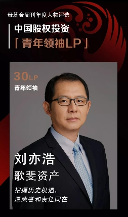 国内知名资产管理平台歌斐资产近期喜讯不断。继10月3日歌斐资产红树林CEO马晖洪当选成为SBAI亚太区委员会委员之后,10月17日,歌斐资产私募股权投资合伙人刘亦浩再被评为2019母基金周刊年度人物——“中国股权投资青年领袖LP”!