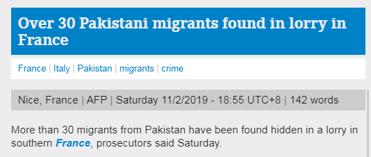 【环球网报道 记者 朱梦颖】欧洲又现一起偷渡事件。据法新社消息,法国检察官11月2日公开消息称,于11月1日在法国南部发现了一辆货车,车内藏有31名来自巴基斯坦的移民,其中3人是未成年。目前,一名巴基斯坦籍货车司机已被拘留。