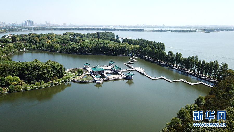 图为航拍东湖听涛景区美景。建筑与湖水融为一体,构成绝美图画。新华网刘晓丽 摄