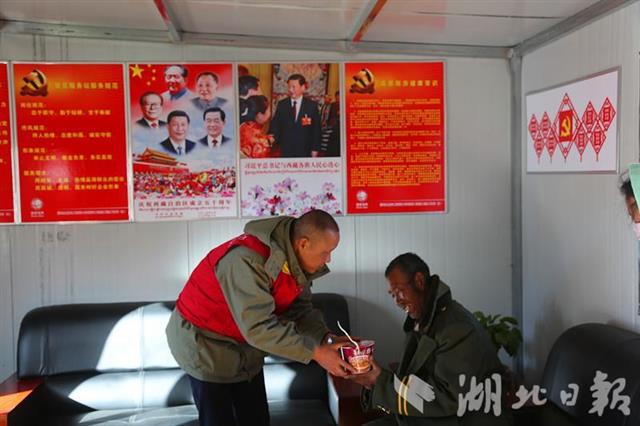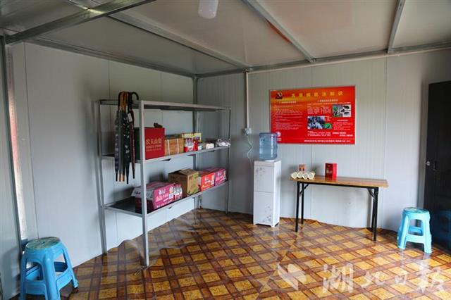 游客和藏族同胞路过318国道时,有的人因旅途劳累,会在材料站旁稍作歇息。今年9月,项目部临时党支部结合材料站临近318国道的实际,决定在材料站旁边建起简易的党员服务驿站。站内配备桌椅、饮用水、雨具、食物、高原常用医药等用品,还悬挂有高原旅游健康常识,为路过群众提供便利服务。