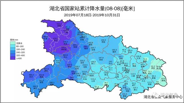 气象监测显示,7月18日出梅以来,湖北省气温偏高、降水持续偏少,据统计,7月18日至10月31日,湖北省降水量整体偏少,尤其是中东部地区,以罗田为例,41.2毫米的累计降雨量还不足神农架的十分之一。江汉平原及整个鄂东地区累计降雨量大部分地区居历史同期倒数前3名,武汉、咸宁、洪湖、云梦等18个县市,累计雨量为1951年气象纪录以来同期最少,比如武汉出梅以来至10月31日的累计雨量还不到100毫米。