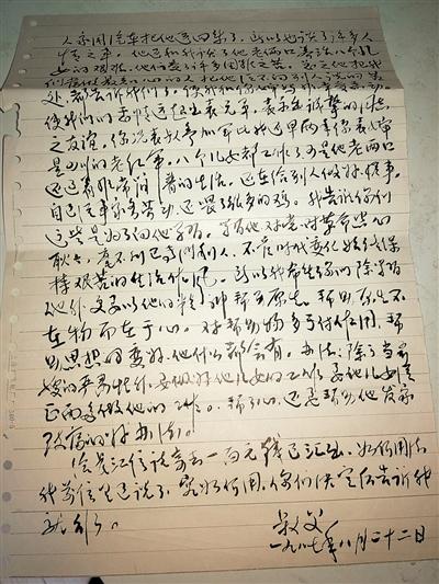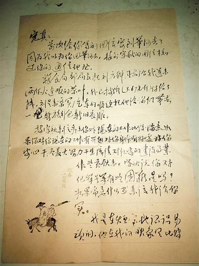 信中说:“上次给你写的回信寄到华河去了,因为我以为你回华河去,接到宗秋的回信才知道你的通讯地址。”“接宗秋来信看,你对现在的工作比较满意,如果你对你现在的工作有兴趣,对你身体有好处,那你安心干。”