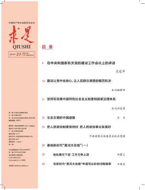 2019年11月1日出版的第21期《求是》杂志目录(部分)