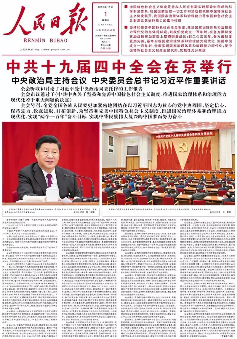 2019年11月1日人民日报第1版版面