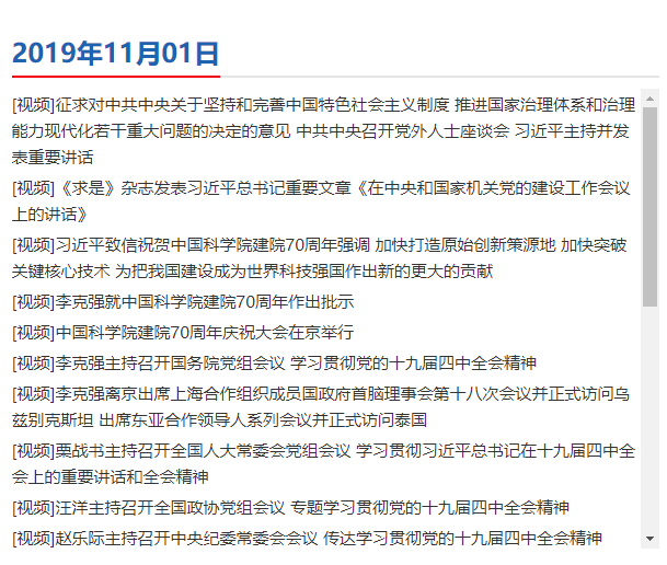 2019年11月1日央视新闻联播目录(部分)
