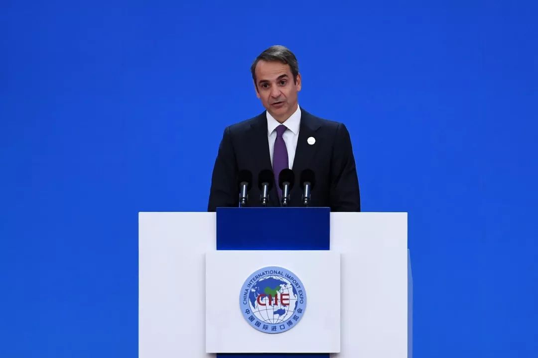 ▲2019年11月5日,上海,第二届进博会开幕,希腊总理米佐塔基斯发表讲话。