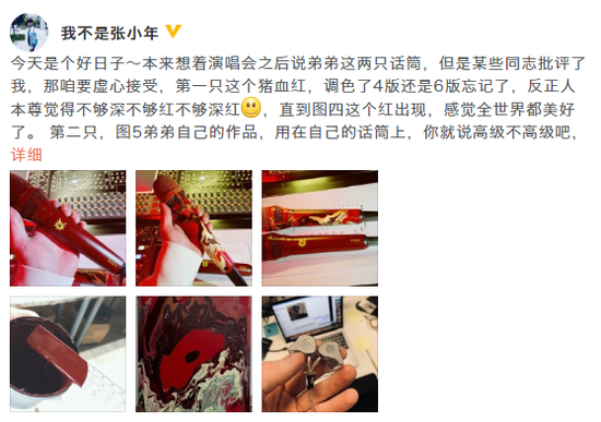 第二只,图5弟弟自己的作品,用在自己的话筒上,你就说高级不高级吧,但是话筒厂家没干过这事啊,没人敢冒险,最后实在没辙,阿邺老师把话筒拆的七零八碎,找的美院的同学,一比一手工画上去,然后再组装,最后的呈现是 质感 手感 性格 特别 精致的一只话筒。
